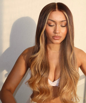 COLOUR: DEEP HONEY BEIGE ROOT STRETCH FADING INTO GOLDEN BLONDE ENDS