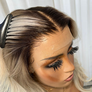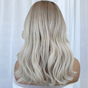 COLOUR: SHORT ASH ROOT MELTING INTO A HIGHER ASH MID LENGTH WITH PEARLY BLONDE ENDS