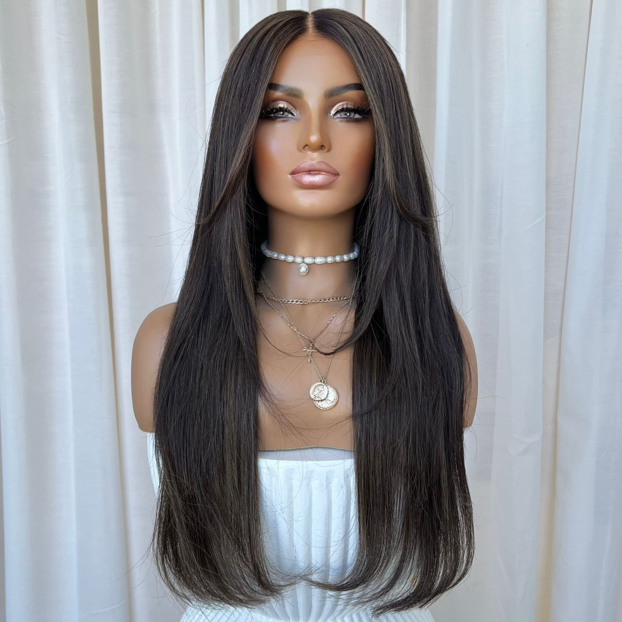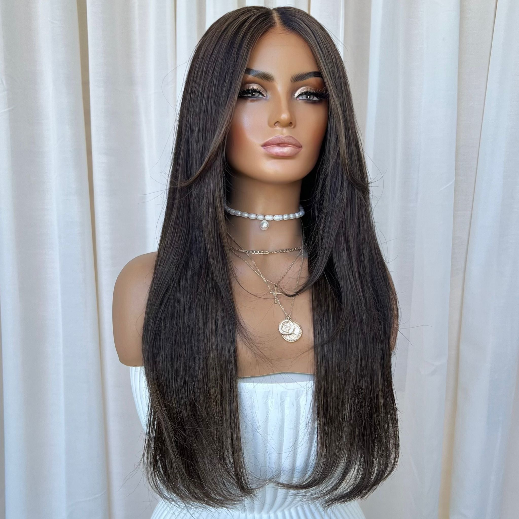 Please note: We take new photos for each of our wigs so our clients know exactly the wig they are getting. The wig in the photo is the exact wig you will receive. We just want to note that sometimes lighting on phones and screens can look slightly different & cannot be relied on to always accurately represent colours.🤍