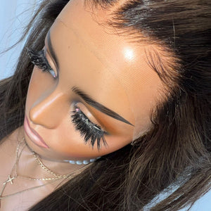 COLOUR: NATURAL BROWN ROOTS FADING INTO LIGHT BROWN OMBRÉ WITH CARAMEL FACE SHAPING HIGHLIGHTS