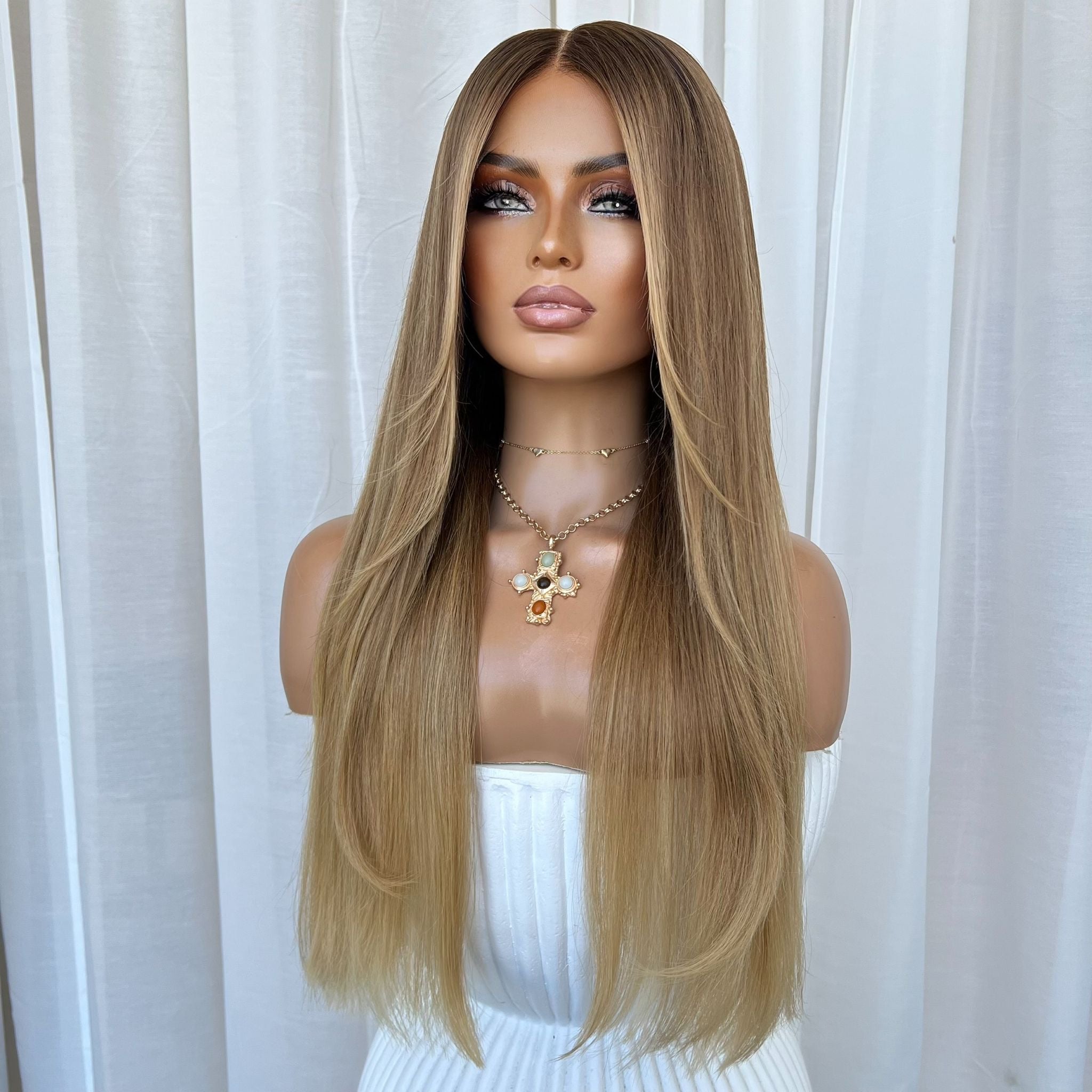 Please note: We take new photos for each of our wigs so our clients know exactly the wig they are getting. The wig in the photo is the exact wig you will receive. We just want to note that sometimes lighting on phones and screens can look slightly different & cannot be relied on to always accurately represent colours.🤍