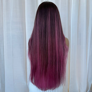 COLOUR: DARK MAHOGANY ROOTS & MIDLEGHTS WITH DUSTY PINK ENDS FACE FRAMING HIGHLIGHTS