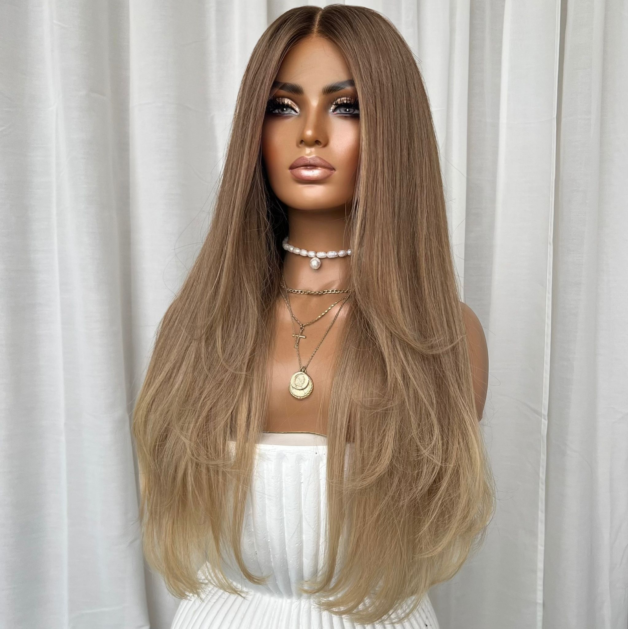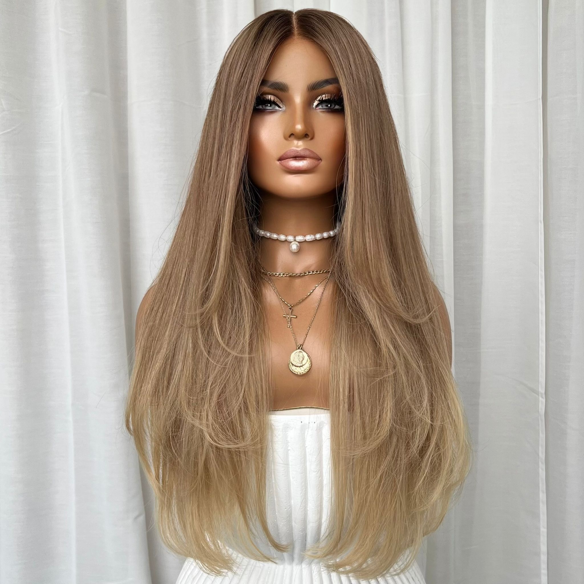 COLOUR: LIGHT BROWN ROOTS WITH CREAMY NATURAL BLONDE ENDS