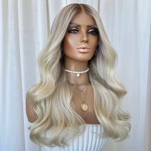 COLOUR: DARK ASH BLONDE ROOT STRETCH WITH LOWLIGHTS AND CREAMY BLONDE ENDS