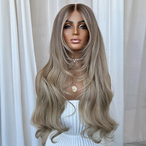 COLOUR: LIGHT BROWN ROOT STRETCH WITH LIGHT ASH BLONDE AND LOWLIGHTS THROUGHOUT