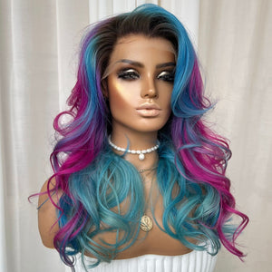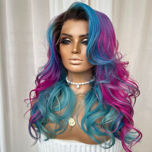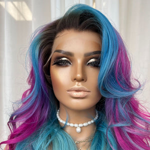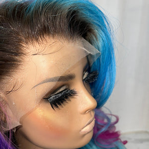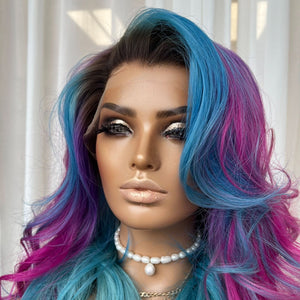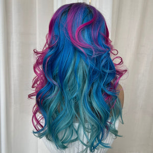 COLOUR: DARK BEOWN ROOTS, BLUE TEAL & LAVENDER & PINK