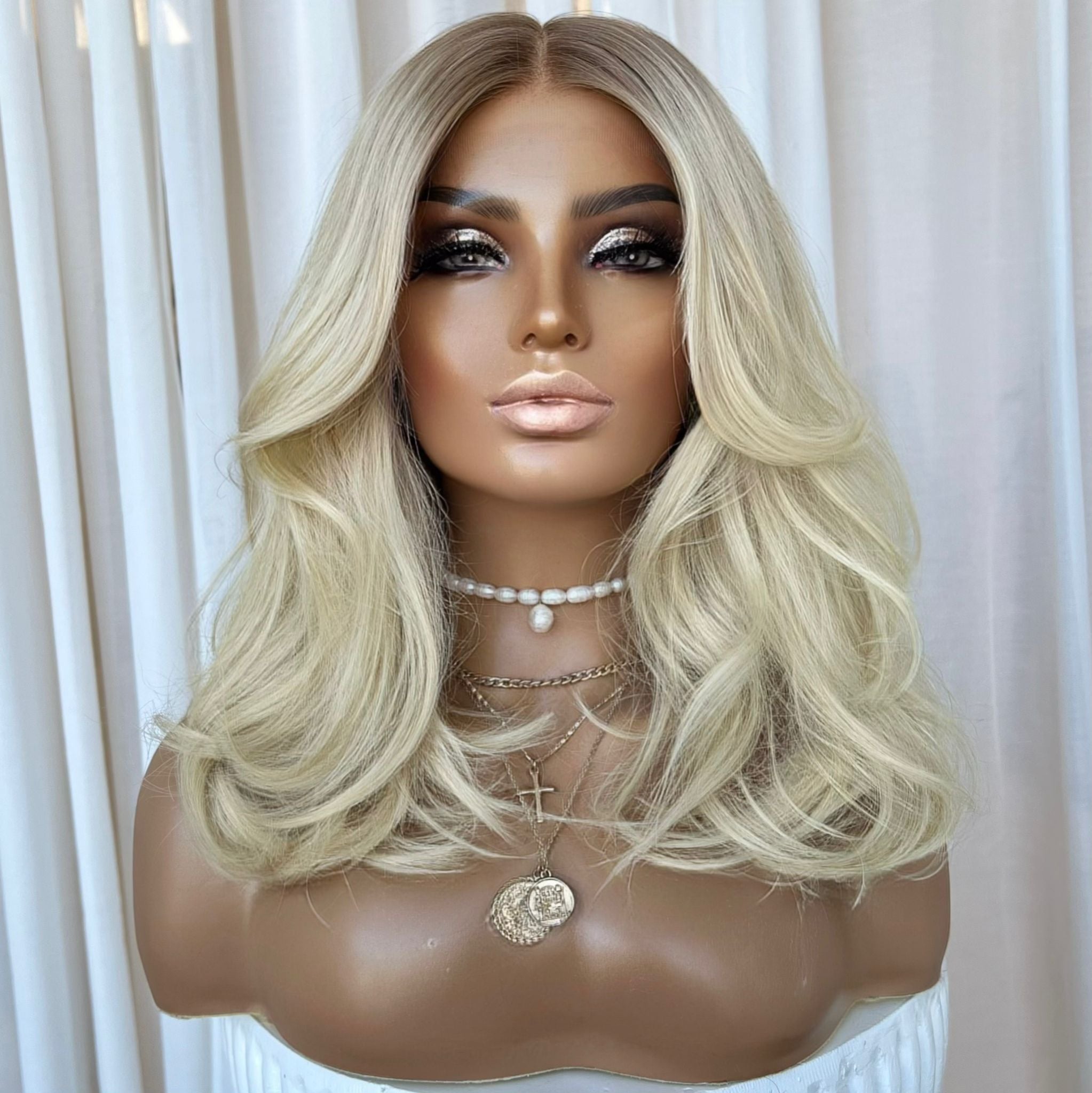 Please note: We take new photos for each of our wigs so our clients know exactly the wig they are getting. The wig in the photo is the exact wig you will receive. We just want to note that sometimes lighting on phones and screens can look slightly different & cannot be relied on to always accurately represent colours.🤍