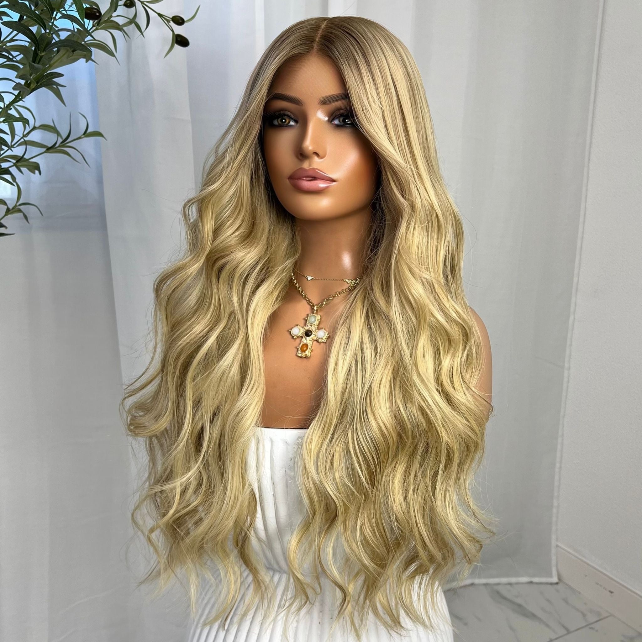 COLOUR: DARK BLONDE ROOTS WITH AN OVERALL CREAMY BLONDE BASE AND LOWLIGHTS