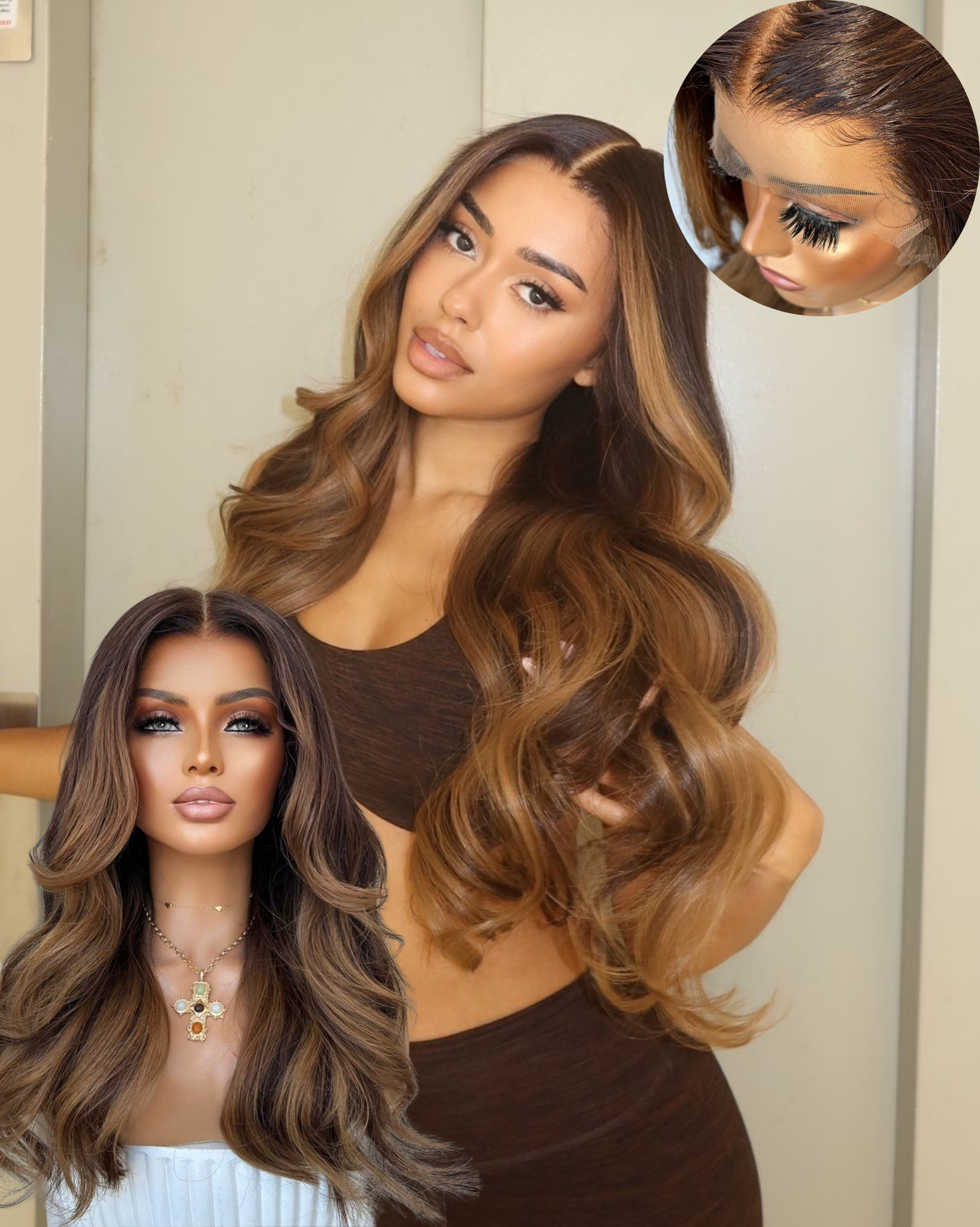 COLOUR: MEDIUM BROWN OMBRÉ WITH BEIGH CARAMEL ENDS AND MONEY PICES