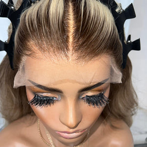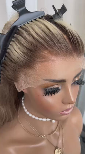 HER COLOUR: DARK ASH BLONDE ROOT STRETCH WITH LOWLIGHTS AND CREAMY BLONDE ENDS