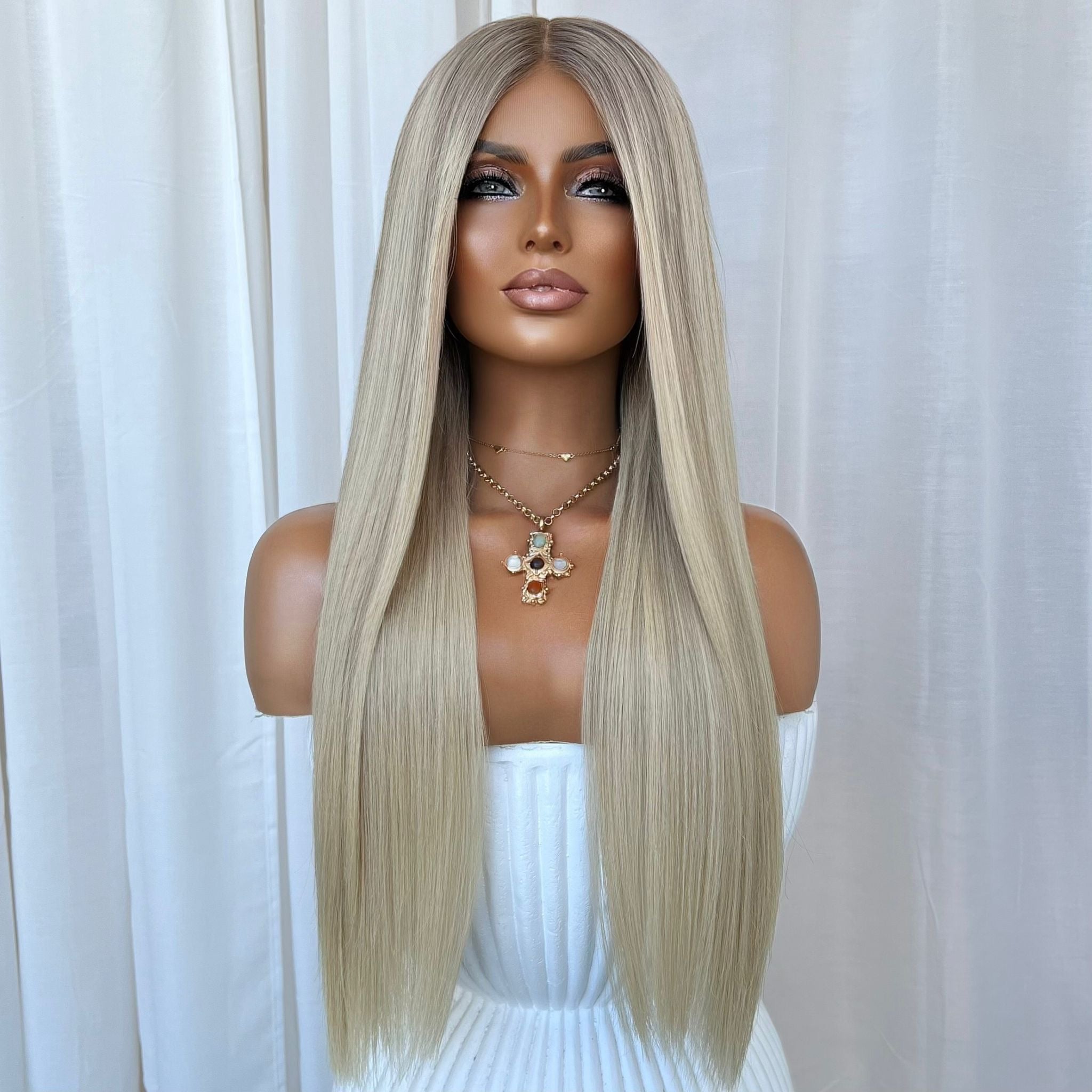 Please note: We take new photos for each of our wigs so our clients know exactly the wig they are getting. The wig in the photo is the exact wig you will receive. We just want to note that sometimes lighting on phones and screens can look slightly different & cannot be relied on to always accurately represent colours.🤍