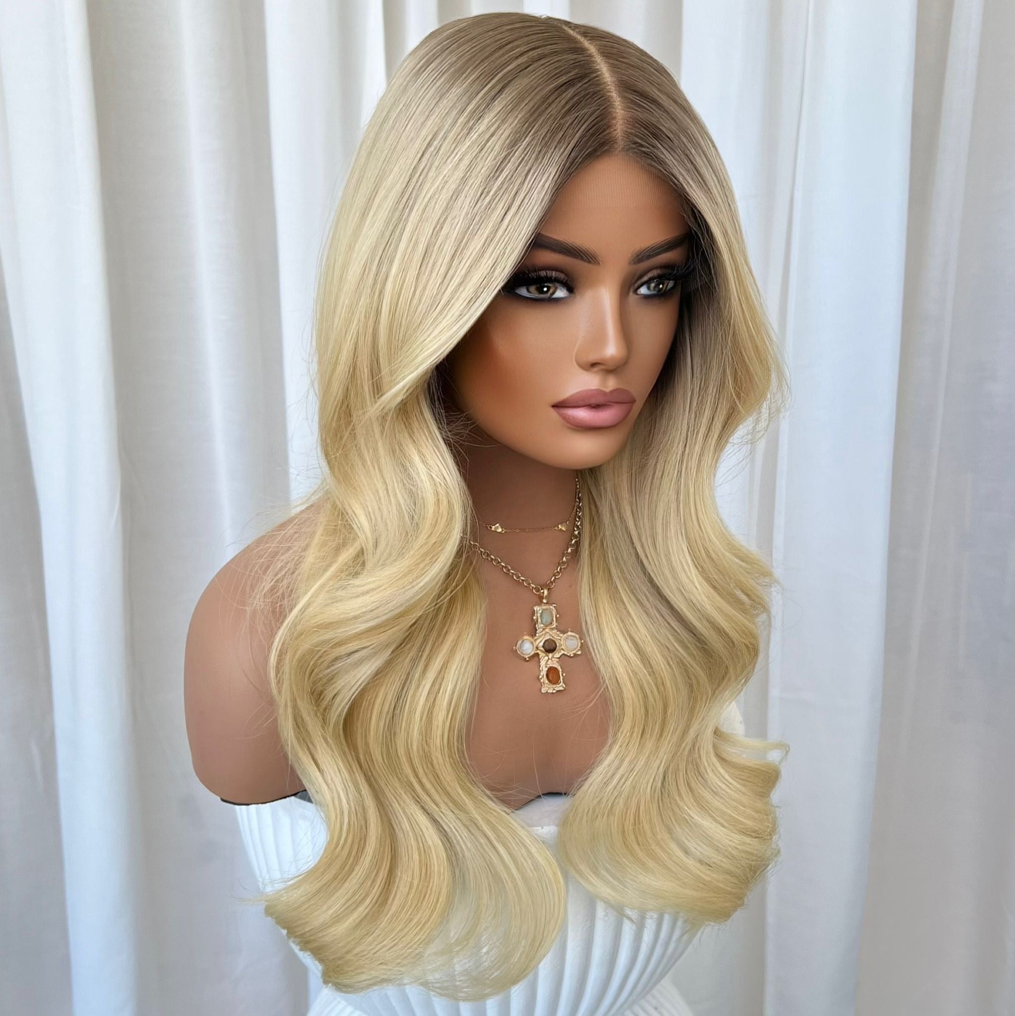 Please note: We take new photos for each of our wigs so our clients know exactly the wig they are getting. The wig in the photo is the exact wig you will receive. We just want to note that sometimes lighting on phones and screens can look slightly different & cannot be relied on to always accurately represent colours.🤍