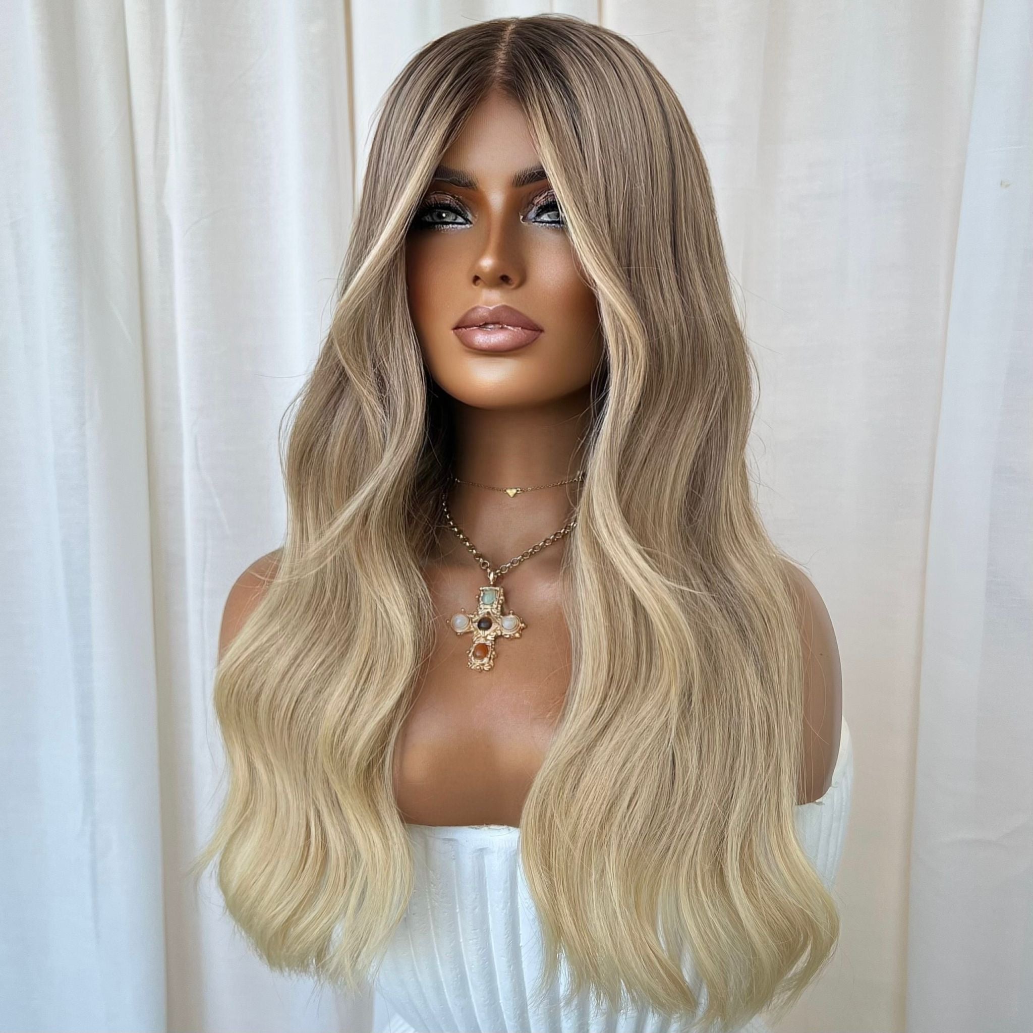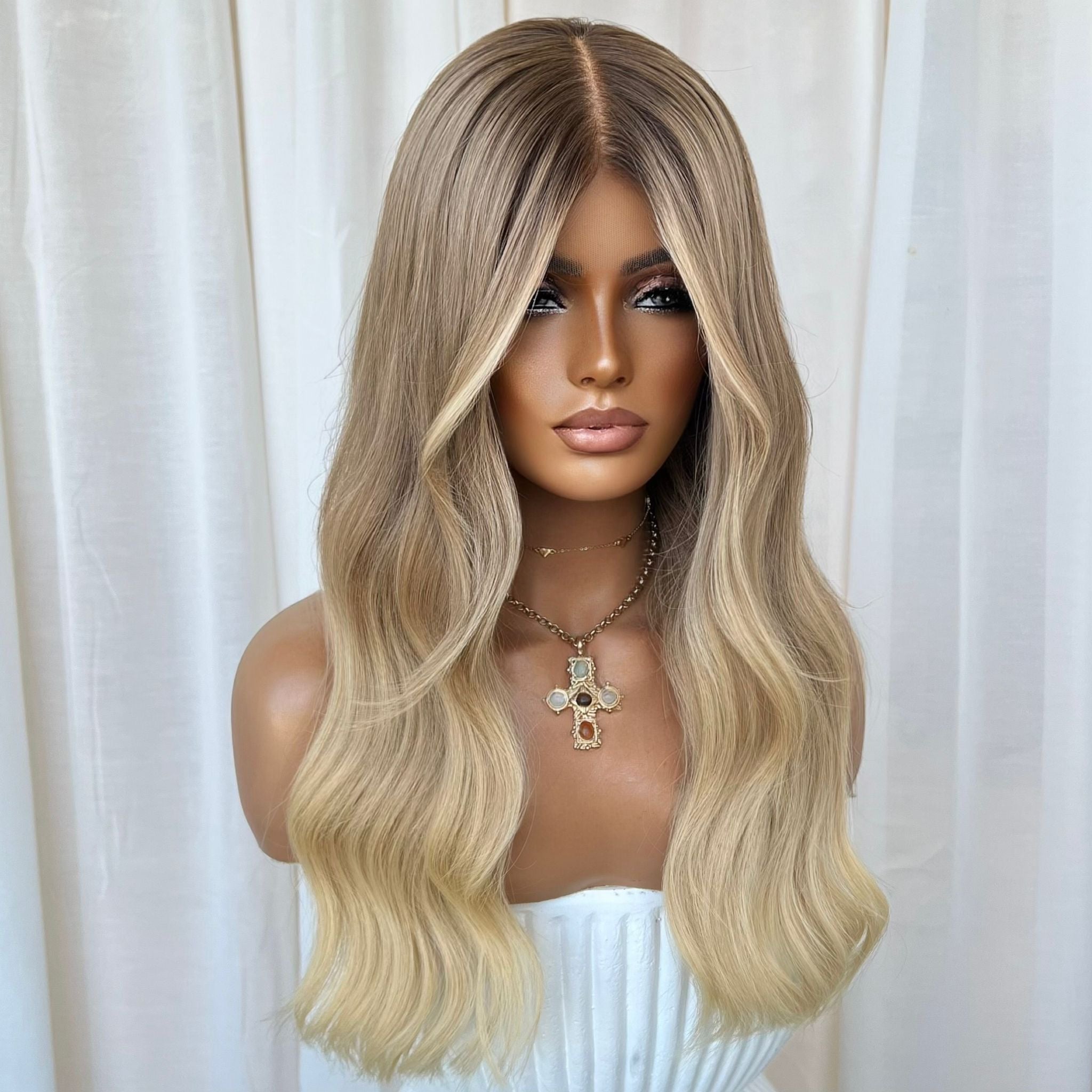 COLOUR: LIGHT BROWN ROOTS WITH CREAMY NATURAL BLONDE ENDS