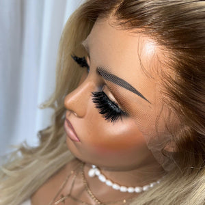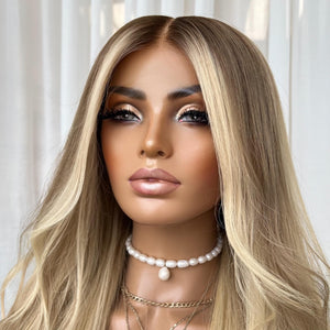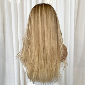 COLOUR: DARK BLONDE ROOTS WITH AN ALLOVER CREAMY BLONDE BASE AMD HIGHLIGHTS