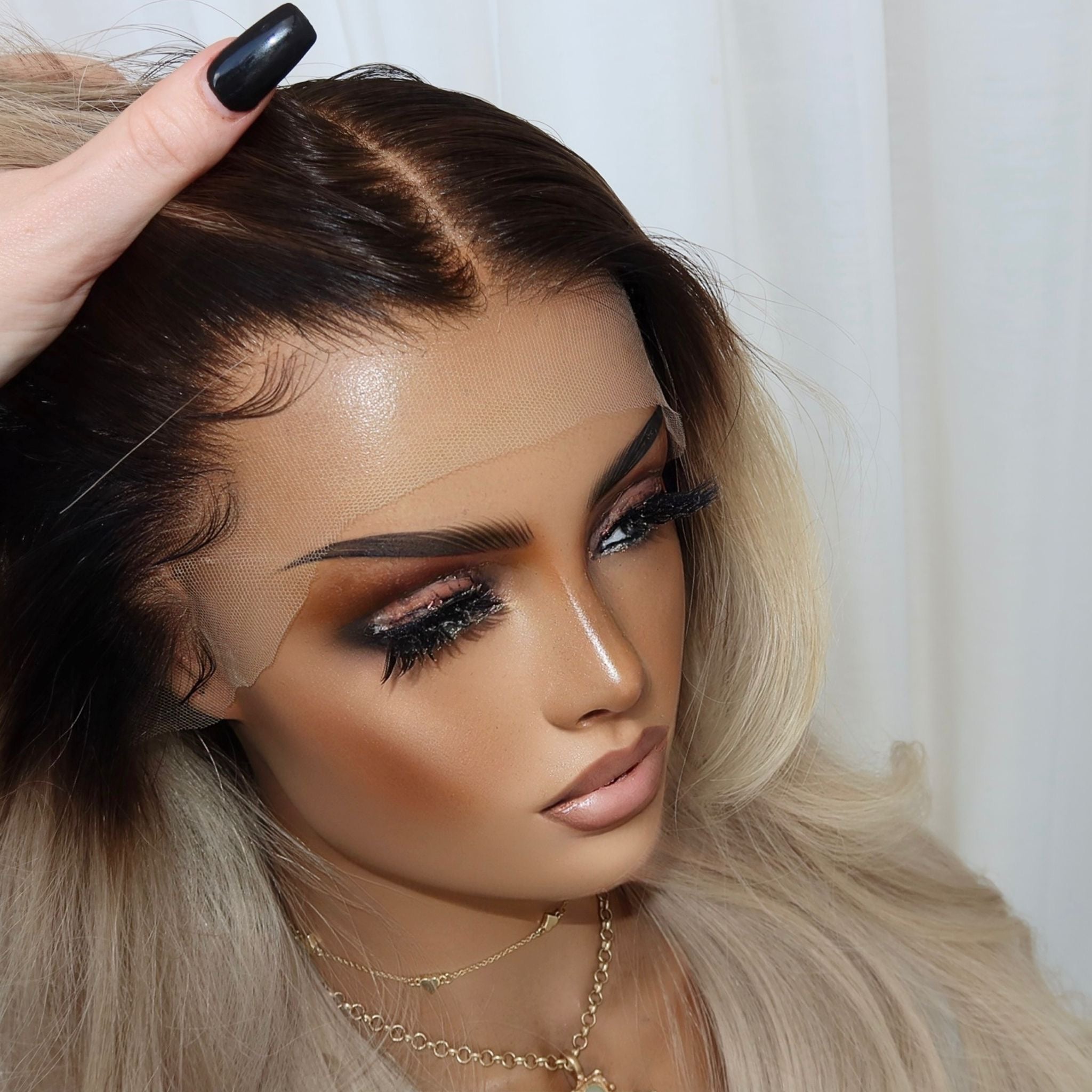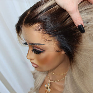 HER COLOUR: SMALL DARK ASH ROOTS WITH PLATINUM ENDS